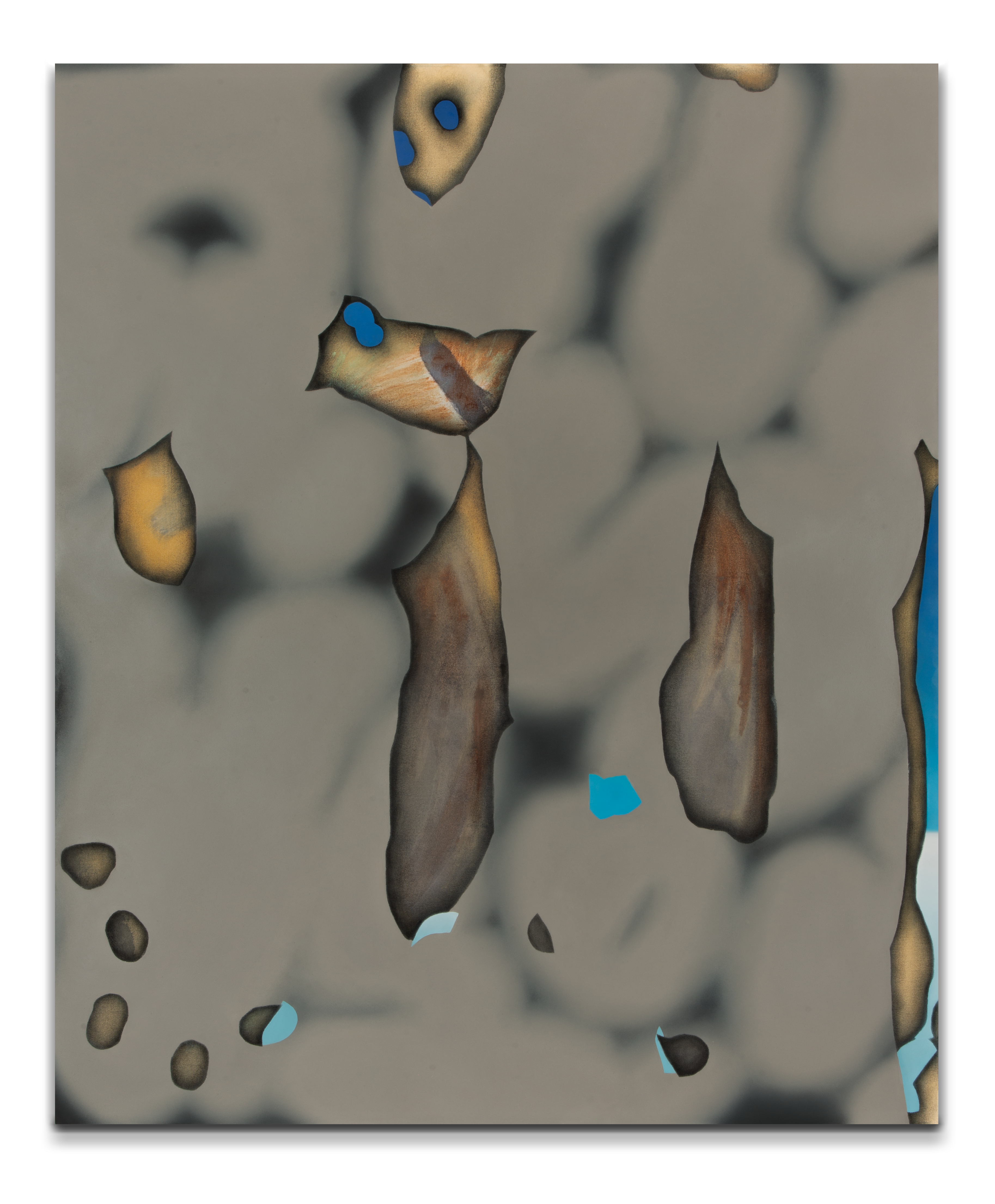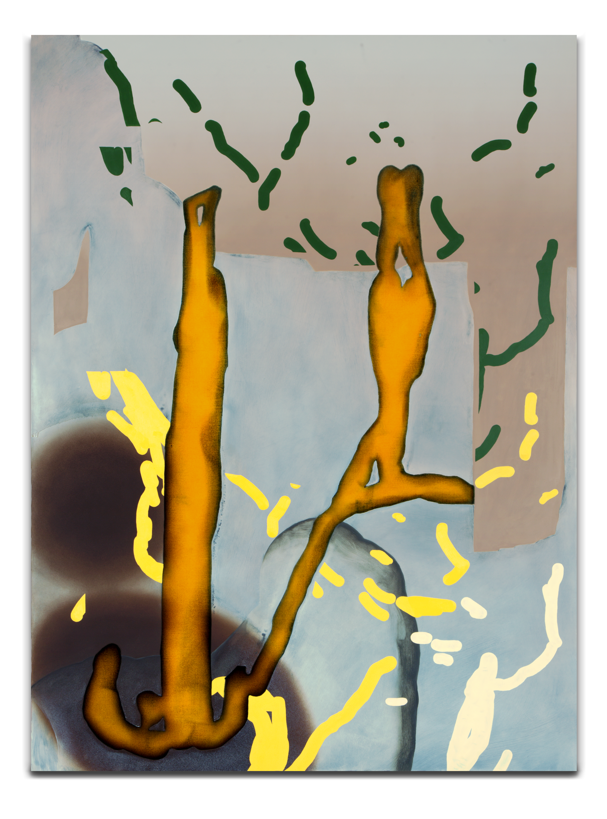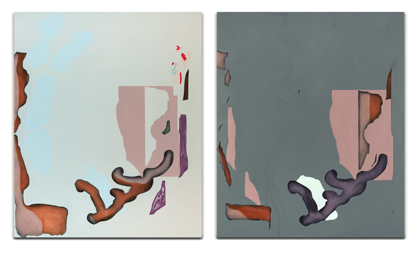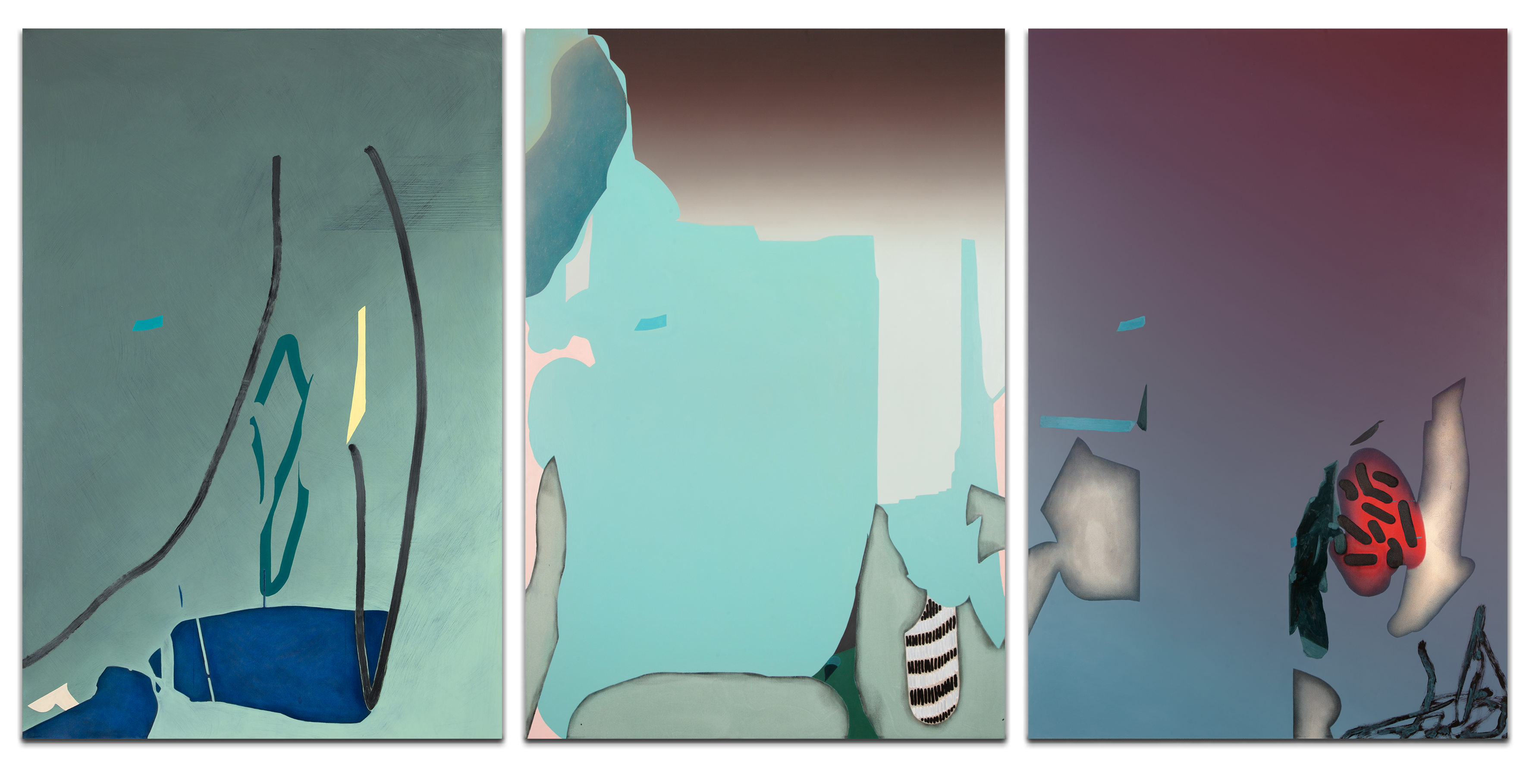 Oil and black gesso on polyester canvas, 80"x 54"x 3 panels